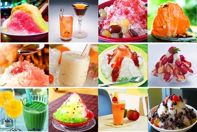 3. Fried wide range of materials, all sugary pink liquid, ice cream, raw, fresh fruit, juice, milk, soy milk, soft drinks, coffee, cola, beer, porridge, etc .