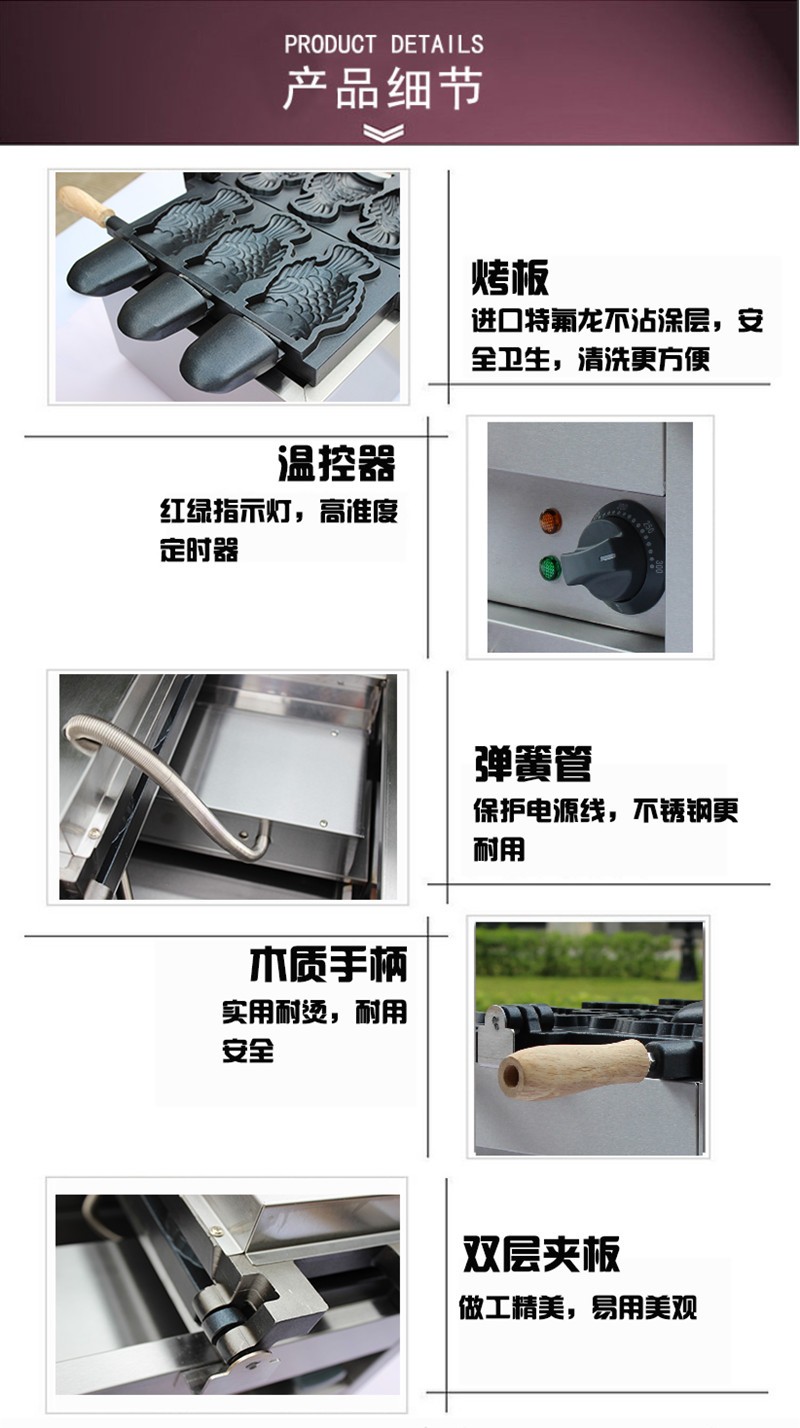 High quality fish cake machine electric heating home use open mouth fish ice cream taiyaki machine